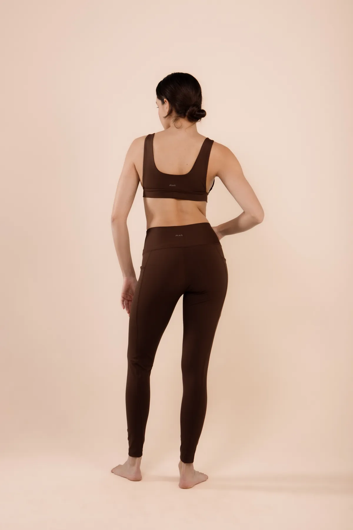 Legging com um bolso em cada lateral, com espaço para acomodar celular, cartão, etc. Cintura alta. Cós sem costura na parte superior, proporcionando conforto.