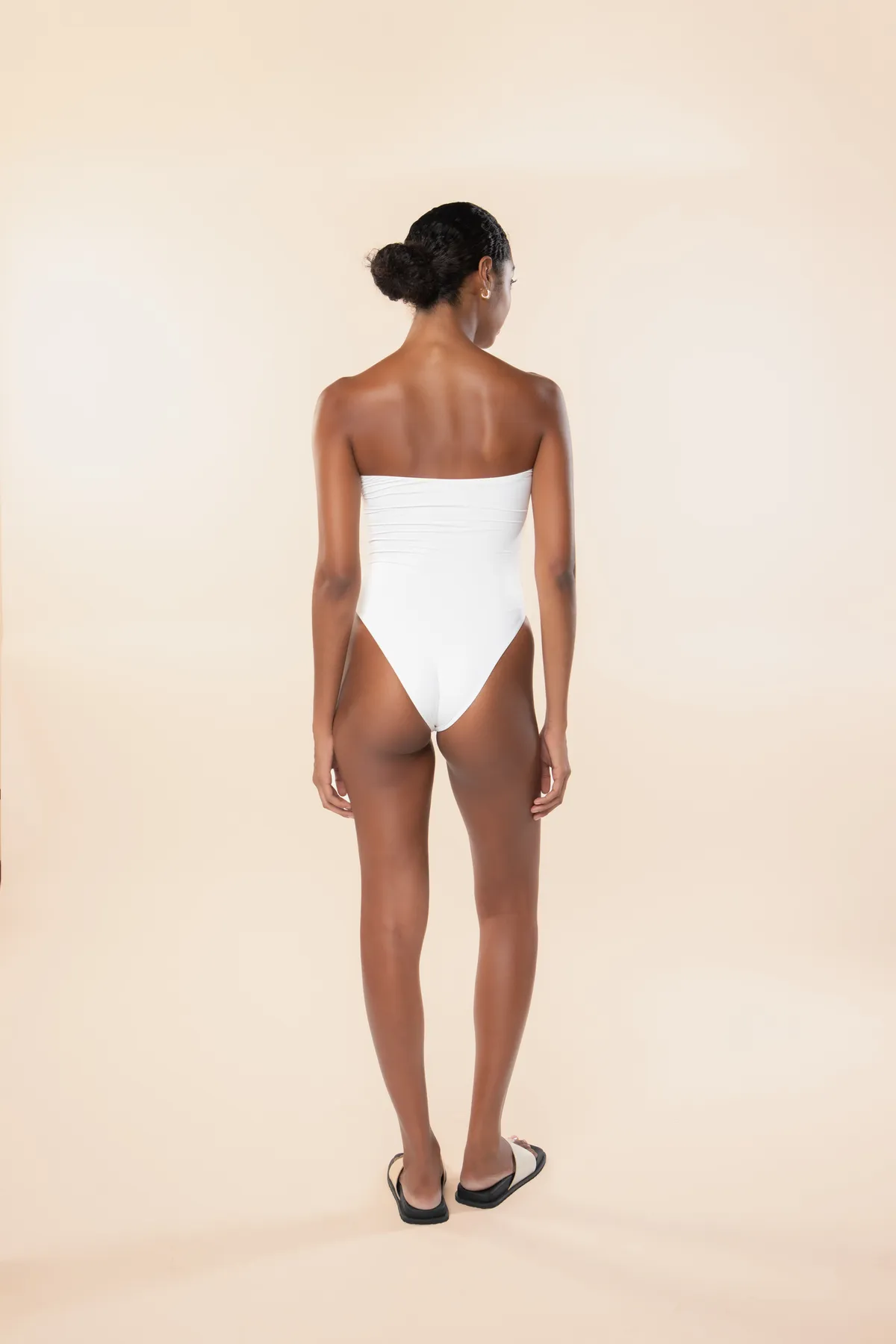 Maiô inteiro básico, tomara que caia, com decote reto. Possui pences nas laterais do busto. Cobertura média, sem cavas acentuadas. Modelagem versátil, transita entre a praia e ocasiões urbanas.