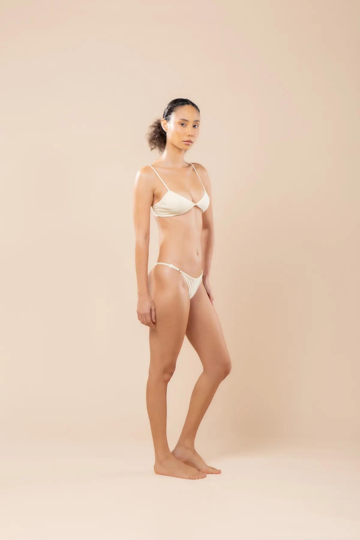 Top camiseta com decote acentuado, modelagem vintage, com pence nas laterais. Alças finas, paralelas e com regulagem. Possui regulador nas costas. Não possui bojo. Tecido em dupla camada. Todos os metais são banhados a ouro.