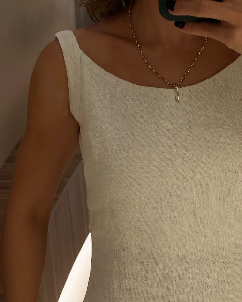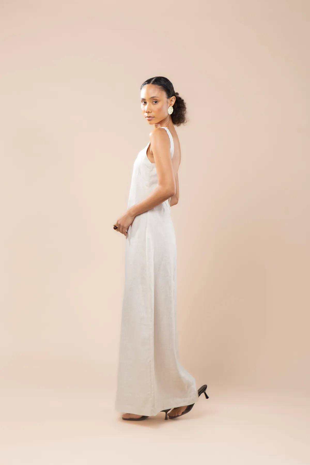 O Vestido Rita é longo, feito 100% em linho, unindo modernidade e conforto de forma natural. Modelagem reta e levemente acinturada, com decote aberto nas costas que proporciona todo o charme da peça. Fechamento em zíper invisível na parte de trás.